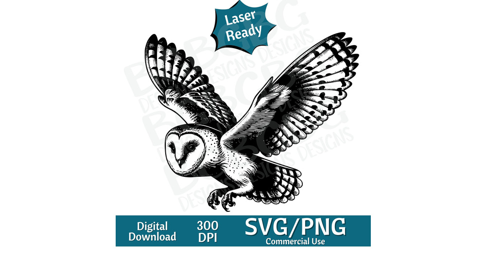 Barn Owl Flying SVG PNG, vector graphic, laser engraver, cnc, Clip art, laser ready, cutting boards,