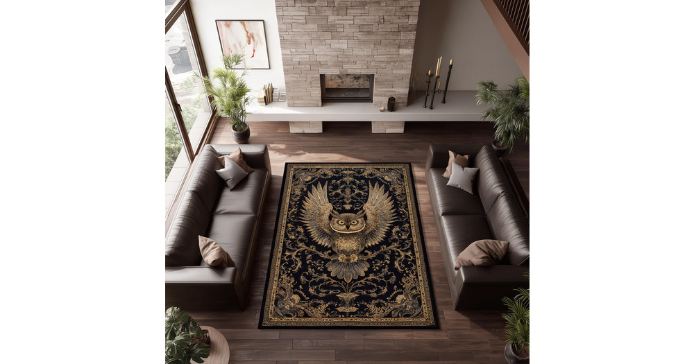 Golden Owl Rug, Gothic Baroque Bird Carpet, Mystic Wisdom Home Decor, Dark Fantasy Tapestry, Elegant