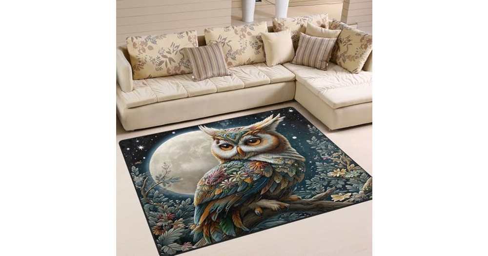 ALAZA Magical Owl Moon Flower Blossom Non Slip Area Rug 4'10" x 6'8" for Living