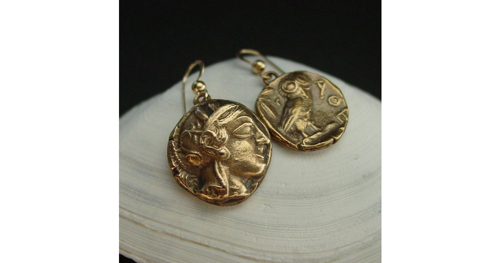 Athena Owl Earrings - Two Different Sides Facing: Handcrafted Ancient Greek Coin Reproduction