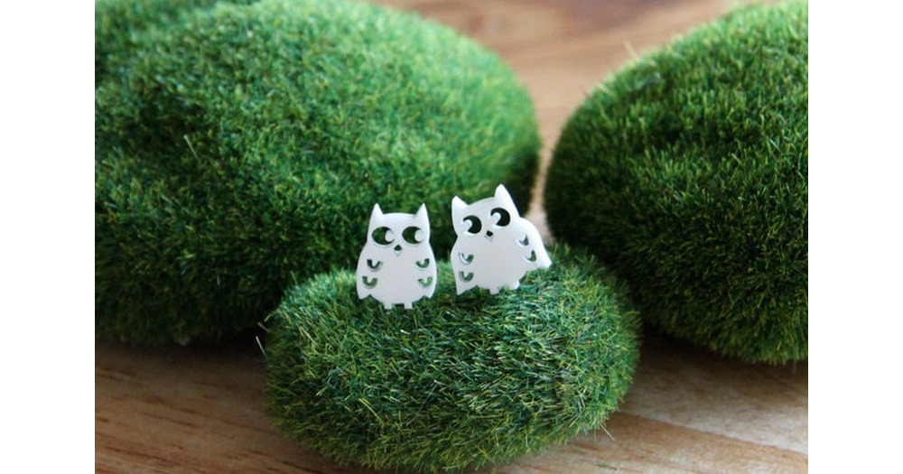 White Owl Earring Studs, Owl Earrings, quirky jewellery, mismatched earrings