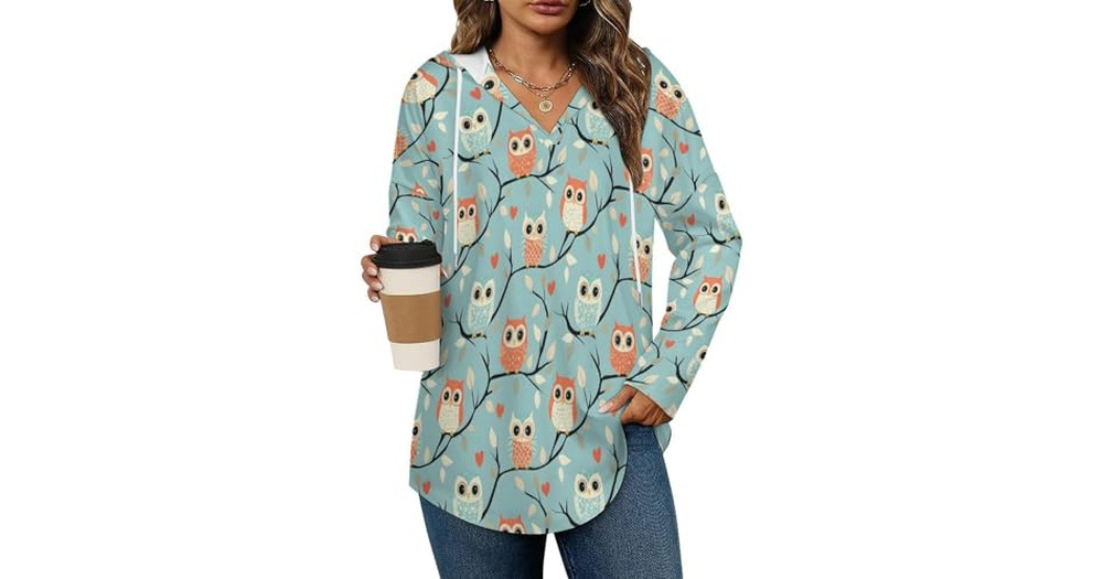Novastar Long Hoodies for Women Trendy - Colorful Owl Cute Print Cozy Loose Fit Ladies Sweatshirts A