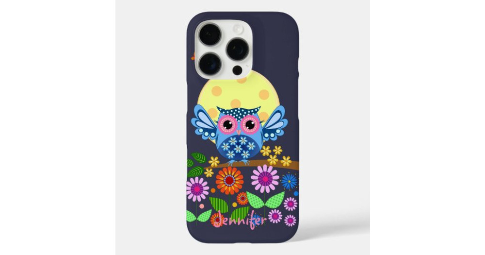 Cute spring Owl & custom Name iPhone 16 Pro Case