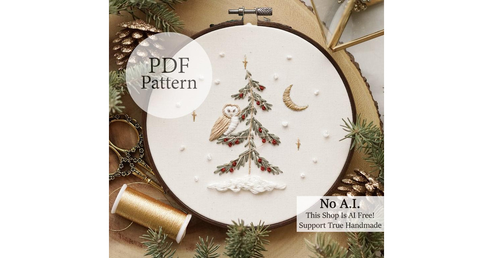 PDF Pattern - 6" Winter Owl - Step By Step Beginner Embroidery Pattern With YouTube Tutorials