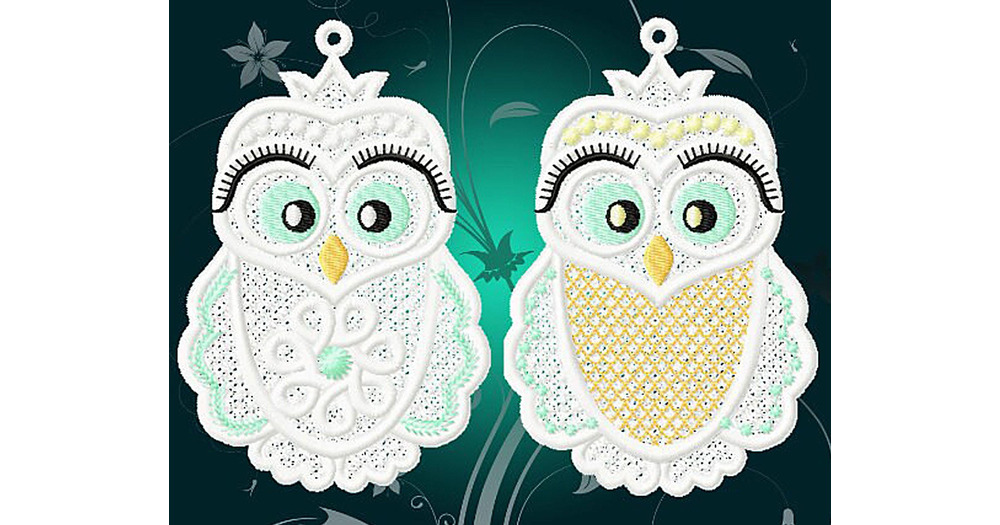 5 sizes FSL Owls - embroidery design, 2 designs - ith, lace,No.1265/insdo/pes, dst, jef, shv, csd, j