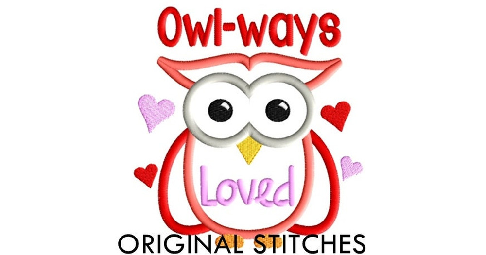 Valentine's Day Owl Applique and Machine Embroidery Digital Design File 5x7 6x10 7x11
