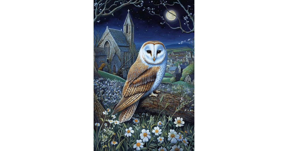 Barn Owl Church Yard Spring Night cross stitch pattern. Instant PDF Download. 60k Stitches.