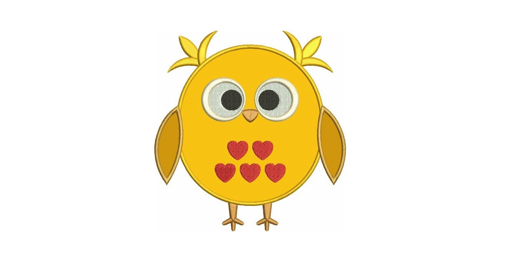 Owl Bird Applique with hearts Machine Embroidery Digitized Design Pattern - Instant Download - comes