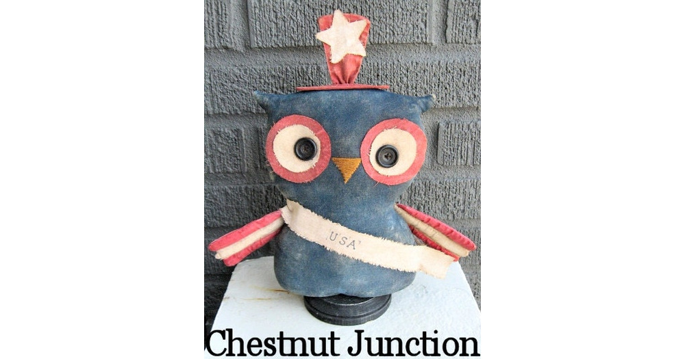 USA Owl EPATTERN...primitive patriotic americana cloth doll craft digital download sewing pattern...