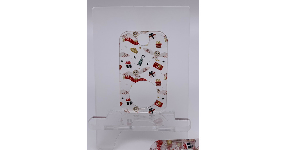 Limited edition Rectangular Owl w/packages print on clear acrylic thread drops. A Crossed In Stitche