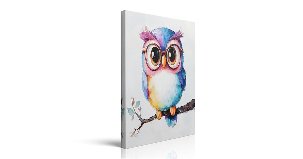 Funny Vintage Cute Owl with Glasses Picture Wall Decor Retro Framed Bird Graffiti Canvas Wall Art Co