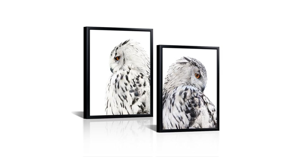 LyerArtork Snow Owl Wall Art Canvas Prints Owl Pictures White Feathers Black & White Birds Anima