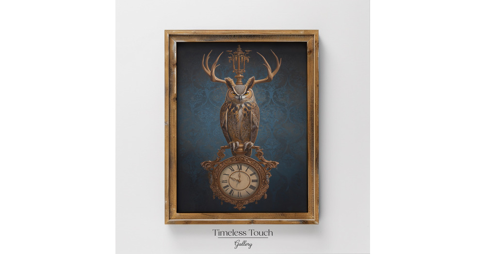 Vintage Owl and Clock Steampunk Digital Wall Art Print