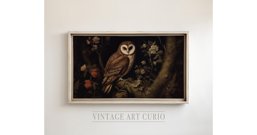 Vintage Owl Painting for Samsung Frame TV: Dark Academia Art (Digital Download)