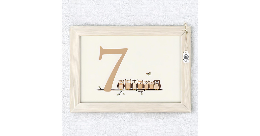 Number 7 Owls nursery print seven gentle night birds perched quietly, adding calm counting magic to