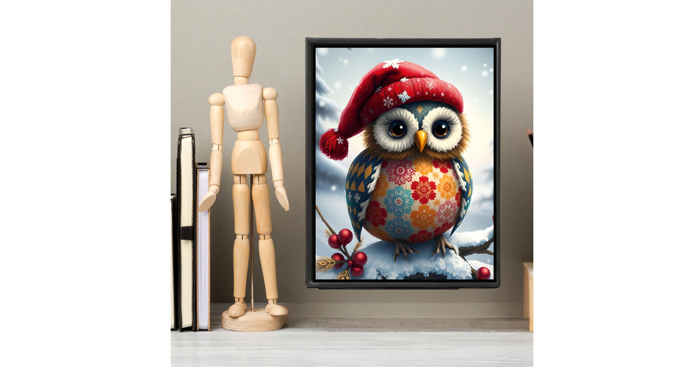 Trio of Christmas owl felt fine art digital download images, Cosy, cute home Christmas decor Digital