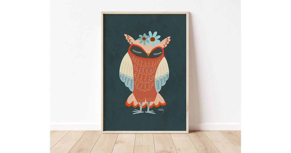 Folk Art Owl Print: Scandinavian Hygge Wall Decor