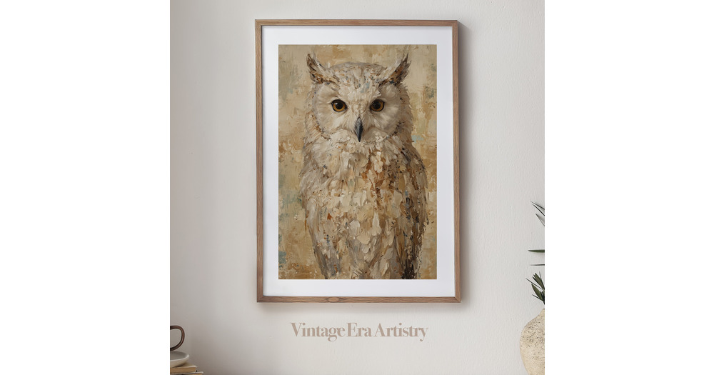 Vintage Owl Portait Oil Painting, Bird Oil Illustration, Printable Wall Art, Digital Download, Digit