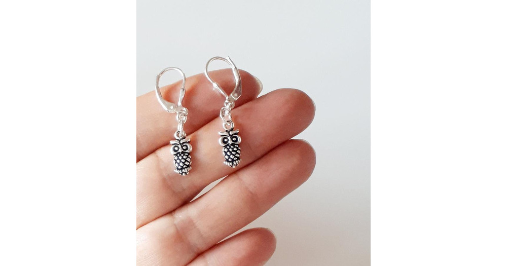 Lever back owl earrings with 925 Sterling Silver ( real silver ), Comfortable owl earrings.