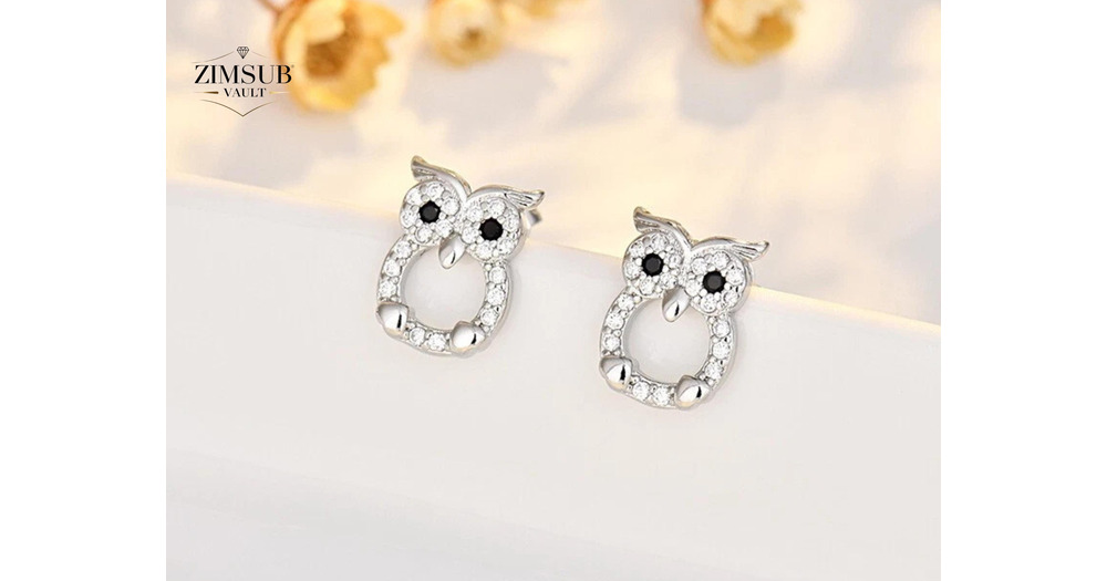 Shiny 925 Sterling Silver Cute Owl CZ Gemstone Stud Earrings Women Girl Gift UK Christmas Gift