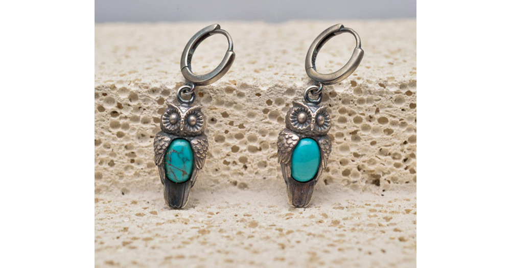 Turquoise Owl Earrings – Sterling Silver Boho Drop Earrings, Handcrafted Gemstone Animal Jewel