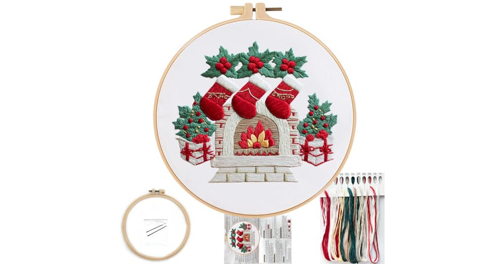 FONNUY Crewel Christmas Embroidery Kit for Beginners, Cross Stitch Set Winter Snow Scene Pine Owl Pa