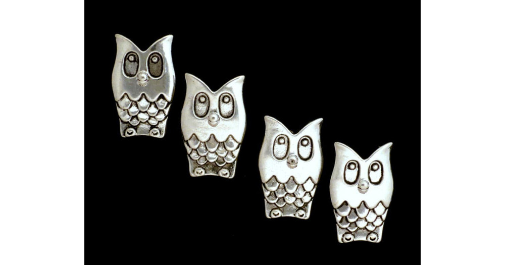 4 Large Silver Metal Owl, Bird, Nature, Woodsy Buttons Black Accents Finely Detailed