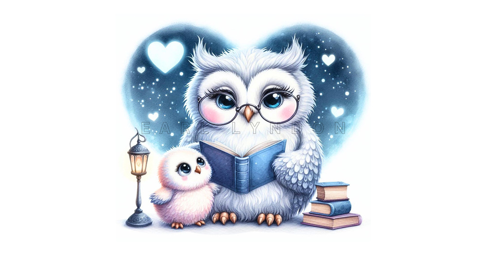 Grandma Grandpa Granddaughter Grandson Owl Clipart - Family Love Fantasy Art, Watercolor Printables,