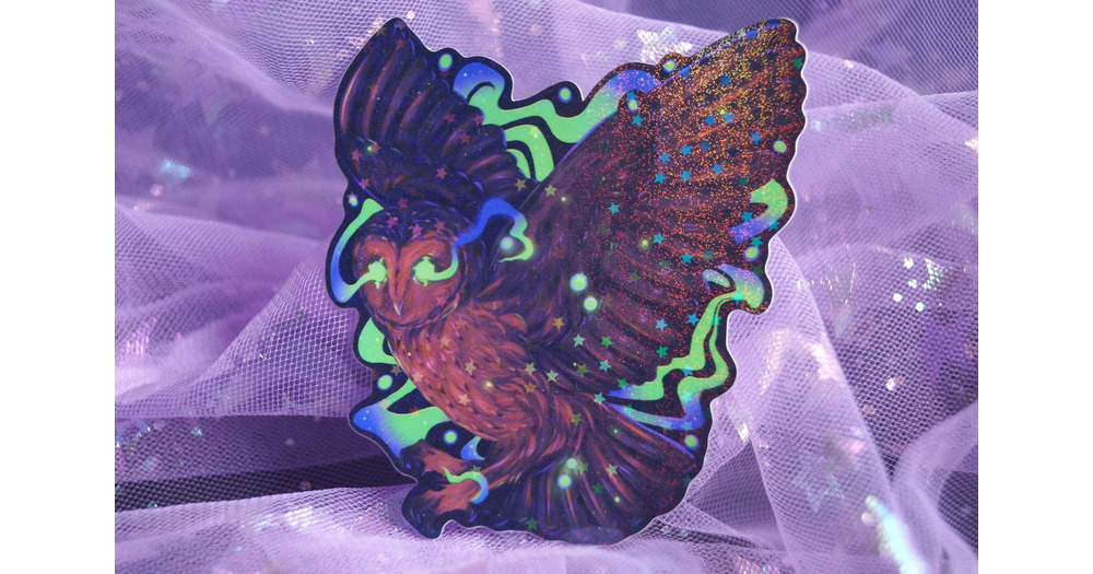 Spooky Neon Barn Owl | Holographic Waterproof Sticker