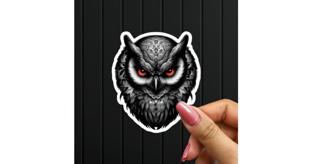 Gothic Owl Sticker, Black and White Owl Vinyl Decal, Mysterious Nocturnal Animal Sticker