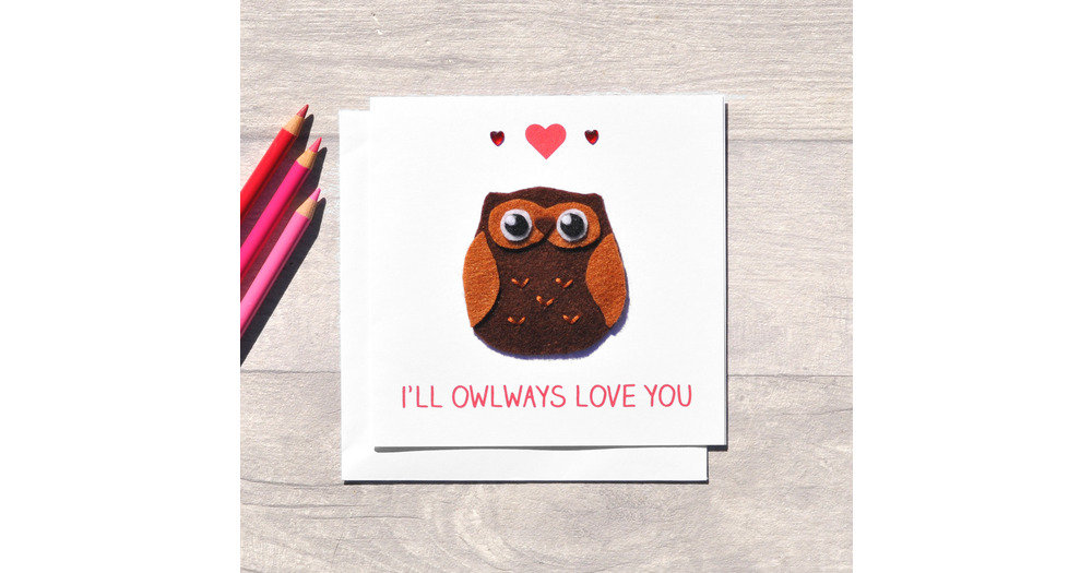 Handmade owl Valentine's Day card, I'll owlways love you! FELT!