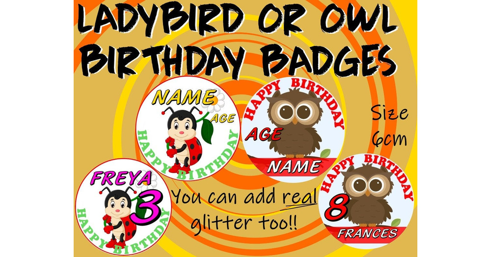 PERSONALISED Ladybird BIRTHDAY BADGE Personalised Owl Birthday Badge Add Real Glitter too!