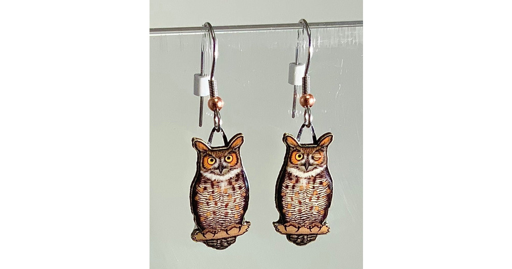 Great Horned Owl Jabebo Earrings, Inspiring Curiosity with cereal box paperboard