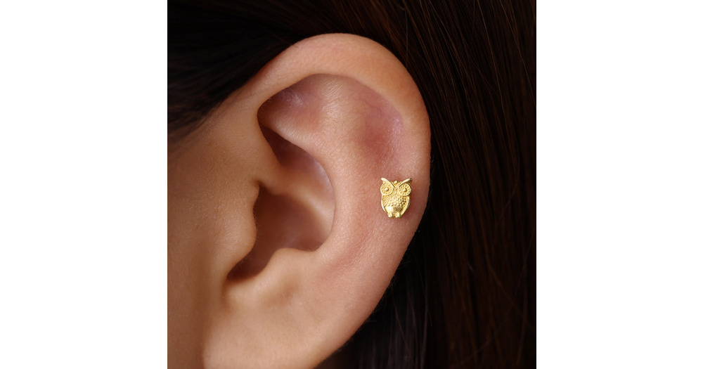 18G Owl Gold Labret Cartilage Studs • owl tragus stud • conch earring • tragus •