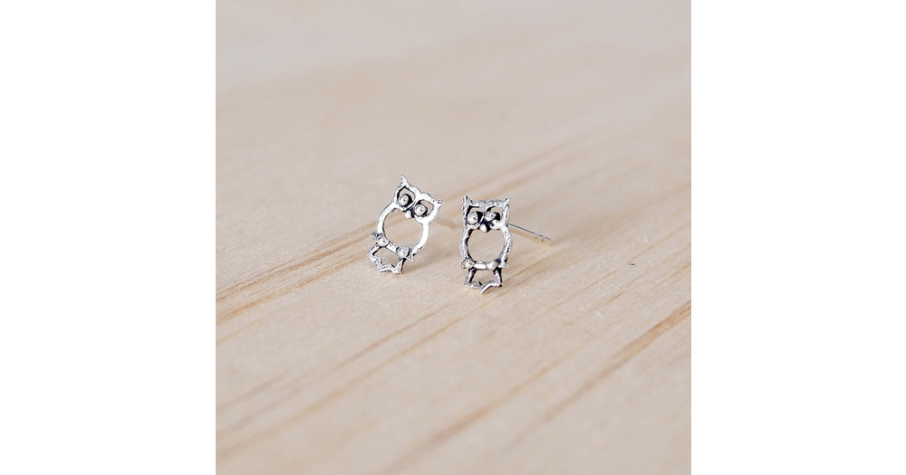 Tiny Owl stud earrings - 925 Sterling Silver - Animal stud earrings, Cute animal post earrings - Car