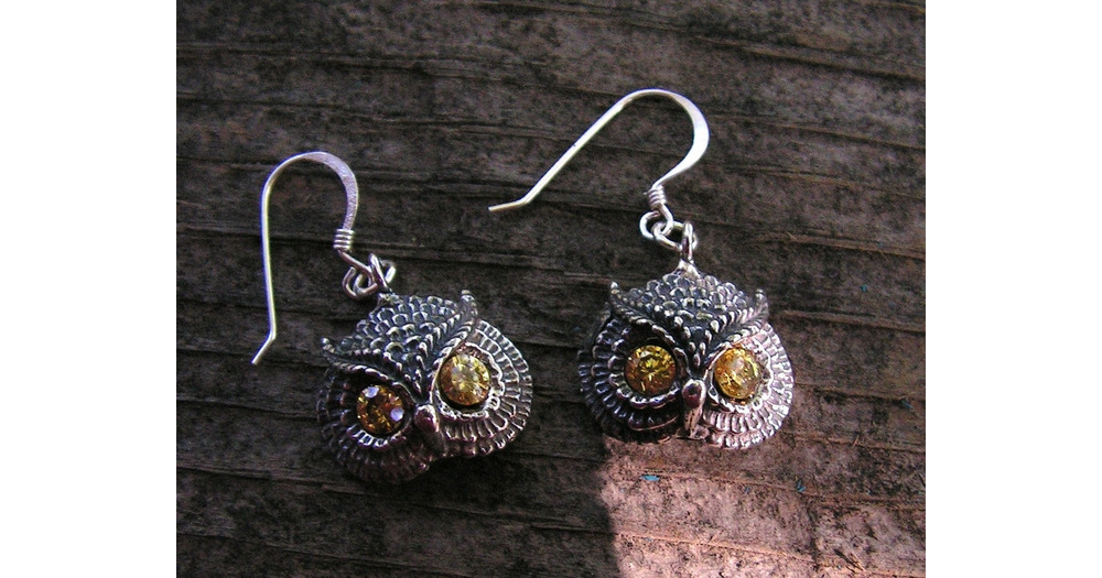 Owl Earrings With Citrine Eyes In Sterling Silver