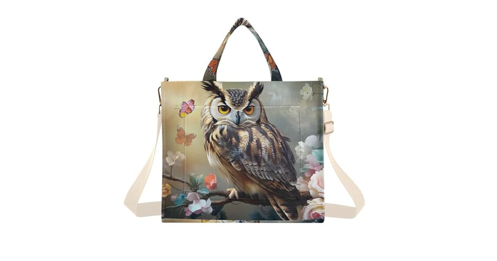YMXFXP Tote Bag Butterfly Owl Floral for Women - Large Corduroy Handbag for Travel Shopping S