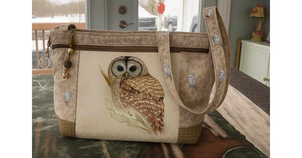 Folk Art Barn Owl Shoulder or Crossbody Strap Fabric Purse 100% handmade