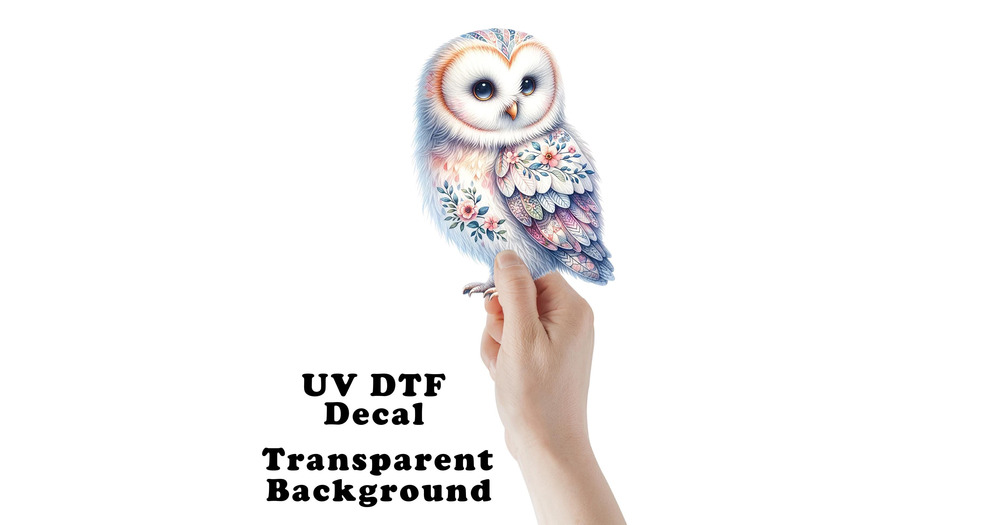 Pastel Floral Owl UV DTF Transparent Decal / Sticker You Choose Size
