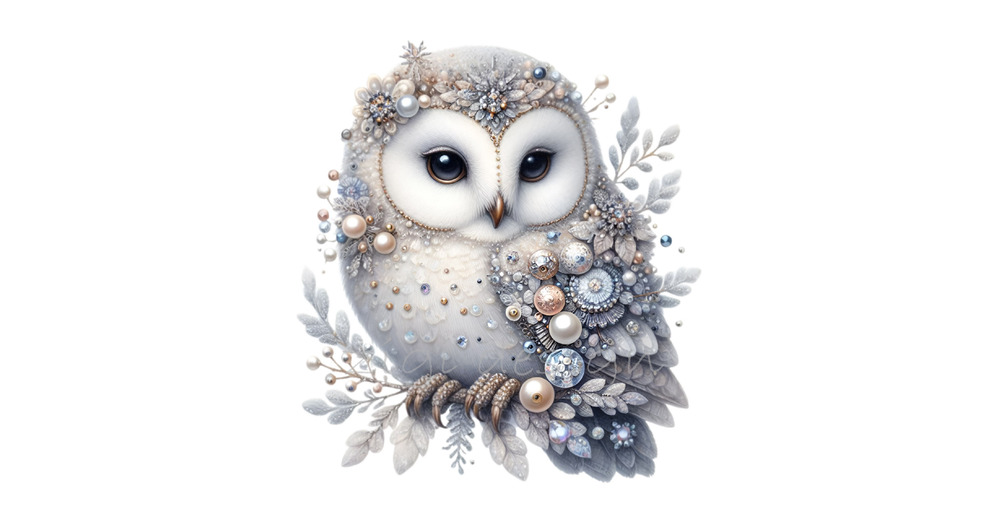 12 Jeweled Owl Clipart PNG, Elegant Owl with Pearls, Winter Owl, Transparent Background, Winter Art.
