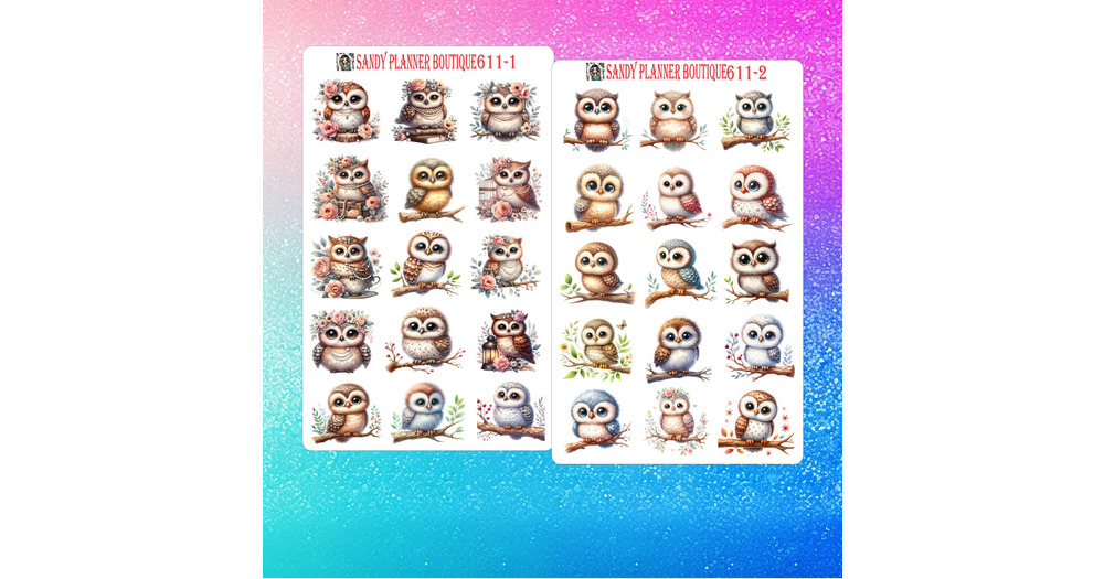 Cute Vintage Owls Planner Stickers Envelope Seals: Waterproof Decorative Stickers 611-1 611-2