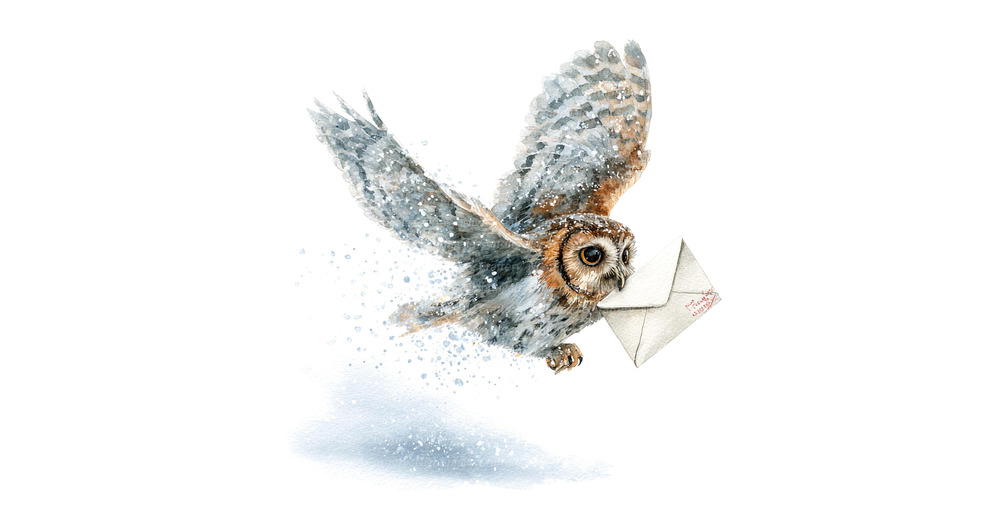 7 Owl Delivering a Letter Clipart, Santa Letter, Printable Watercolor clipart, High Quality JPG, Dig