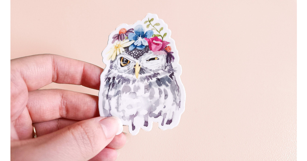 Cute Watercolor Owl / Waterproof Vinyl Sticker