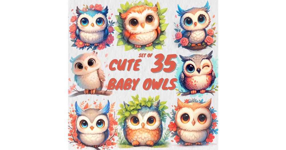 35 Watercolor Cute Baby Owls Clipart,Cute Adorable Owlets,Baby Owlet,Woodland,Barn Animal Illustrati