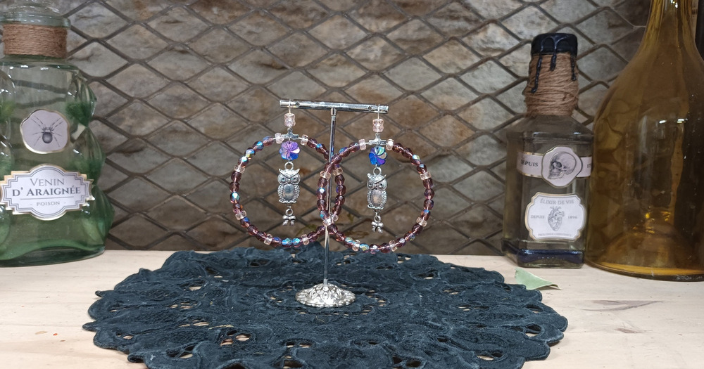 Grandes créoles en perles, perles hiboux, upcycling de bijoux, créoles, créoles