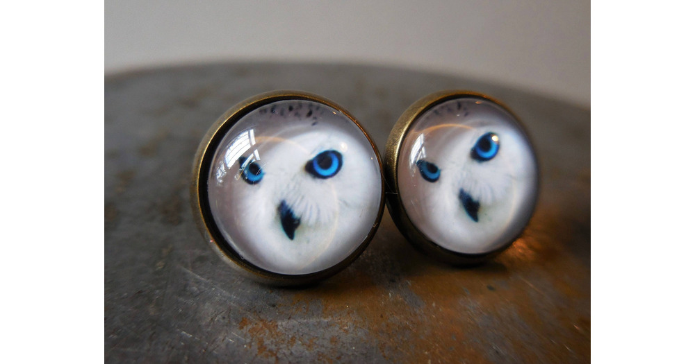 Snowy Owl Stud Earrings, owl gifts, white owl earrings, bird earrings gift handmade jewelry antique