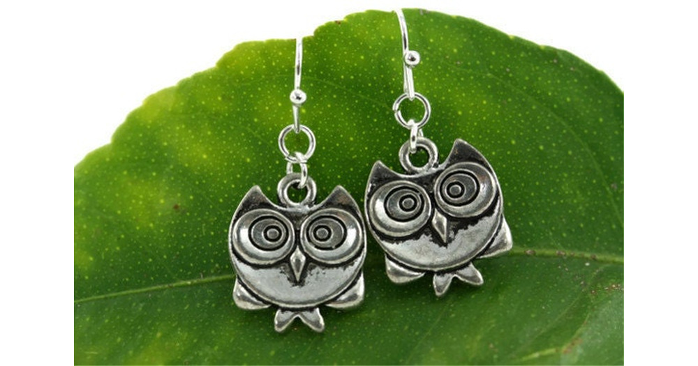 Owl Earrings, Whimsical Fantasy Woodland Nature Whimsy Wise Forest Animal Bird Simple Minimalist Tea
