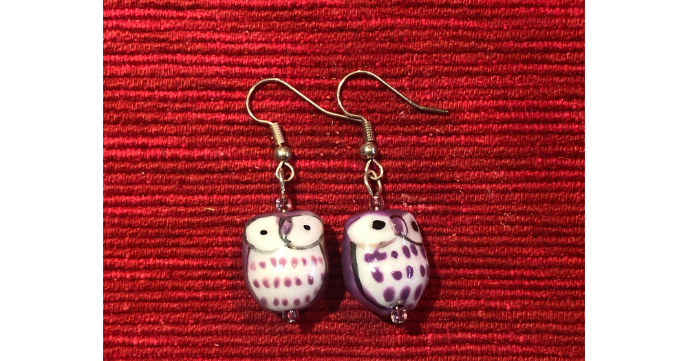 Ceramic Owl Earrings: Dangle Bead Earrings