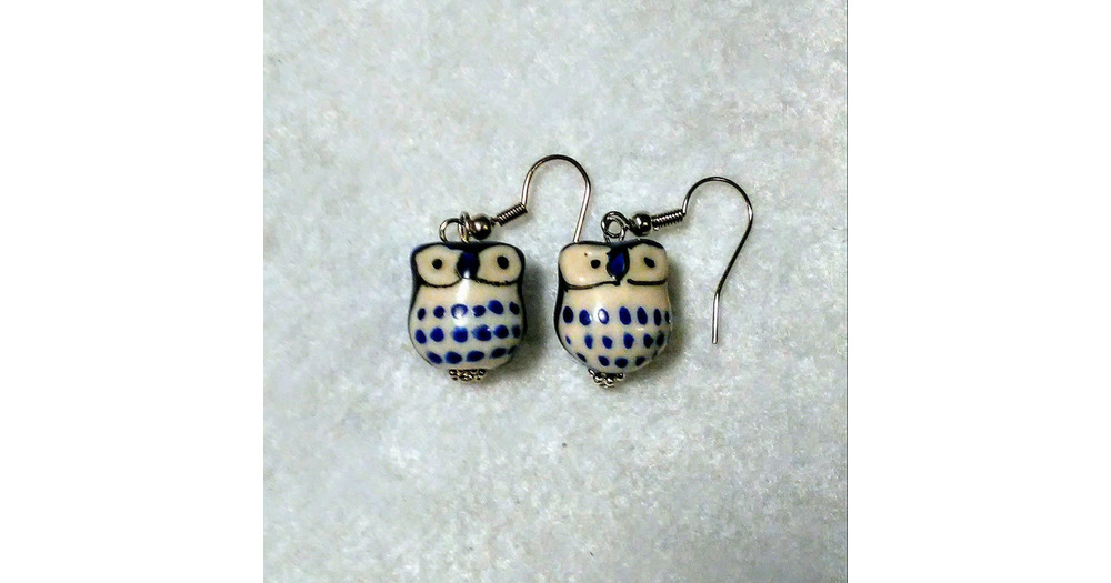 Dark blue ceramic bead owl earrings beautiful dark pretty nocturnal birds barn animals pets farms zo