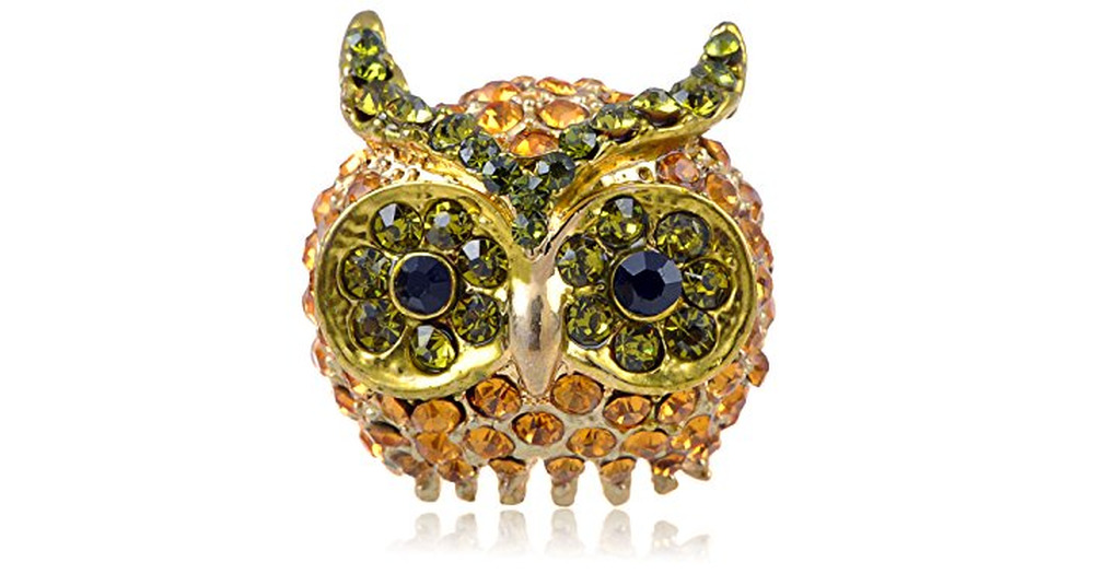 Alilang Women’s Chunky Vintage Gold Tone Topaz Lime Rhinestone Crystal Owl Head Ring